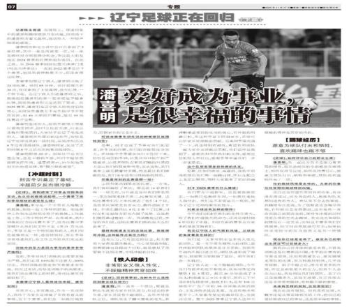记者陈永报道在球场上,球迷印象中的潘喜明踢球硬朗乃至凶猛,但球场下的潘喜明含蓄又温和,说话给人一种轻声细语的感觉。